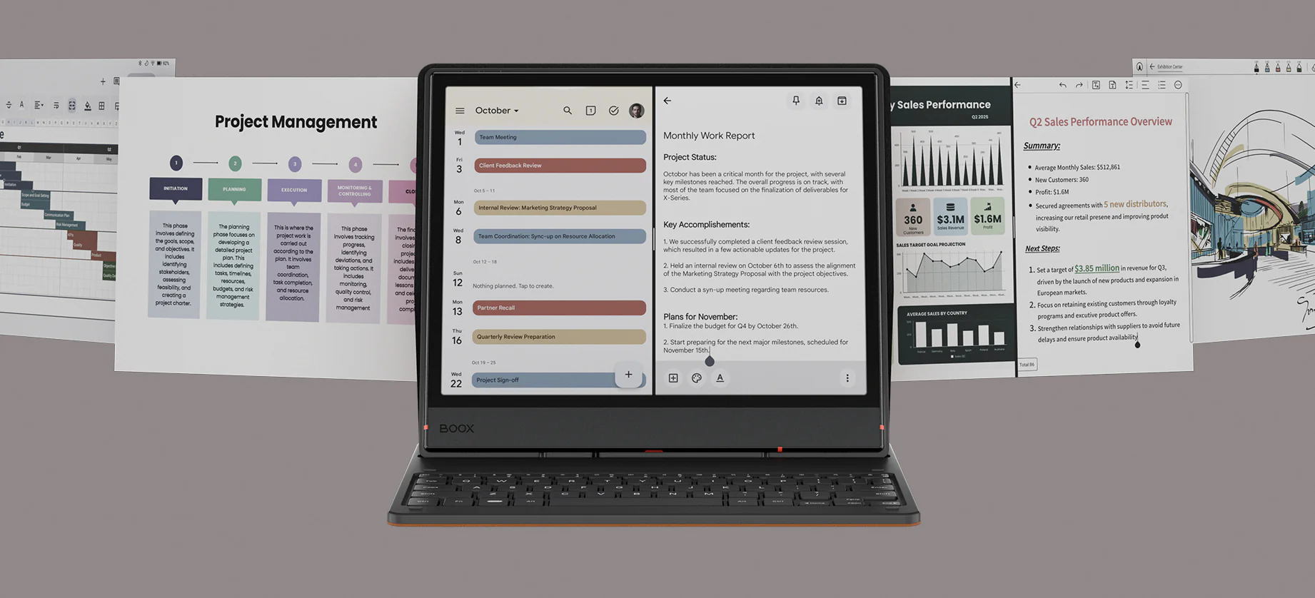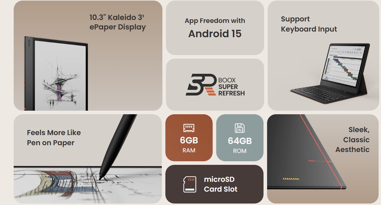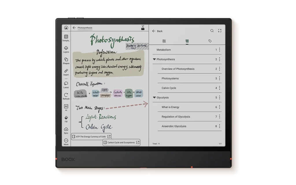 بفضل معالجه القوي ثماني النواة وذاكرة الوصول العشوائي (RAM) بسعة 6 جيجابايت، يُنجز جهاز Note Air5 C مهامه الاحترافية بسهولة ويسر. يُنجز المهام المتعددة، والمشاريع مهما كان حجمها، وحتى الأعمال المكتبية البسيطة بكفاءة عالية. مع تقنية BOOX Super Refresh Technology³، تُصبح كل تمريرة وتمريرة سريعة وسلسة.