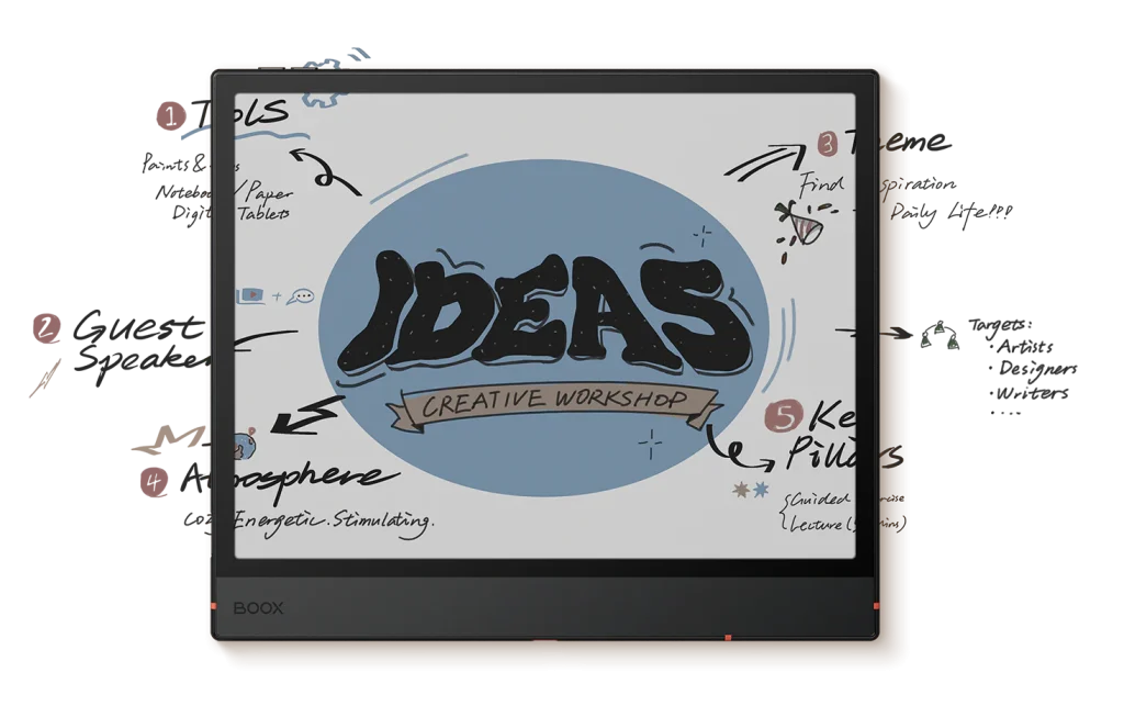 أطلق العنان للفنان الكامن بداخلك مع قلم BOOX Pen3. بفضل تصميم الكتابة اليدوية المُحسّن لجهاز Note Air5 C، يوفر تجربة رسم وتخطيط أكثر واقعية مع احتكاك ومقاومة كافية.