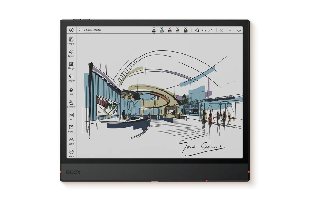 شاشة Kaleido 3 ePaper مقاس 10.3 بوصة على Note Air5 C تُقدم ألوانًا نابضة بالحياة وتفاصيل واضحة، مع الحفاظ على راحة العين. استمتع بتبادل الأفكار، ومراجعة التقارير، والعمل على لوحة ألوان زاهية، تُشبه الطباعة، وسريعة الاستجابة.